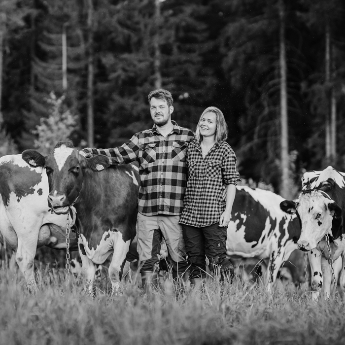 Asikkalan juustolan omistavat Emma ja Juho Murto. Perheeseemme kuuluu myös kaksi pientä koululaista. Tilan vanha väki asuu päärakennuksen yläkerrassa.